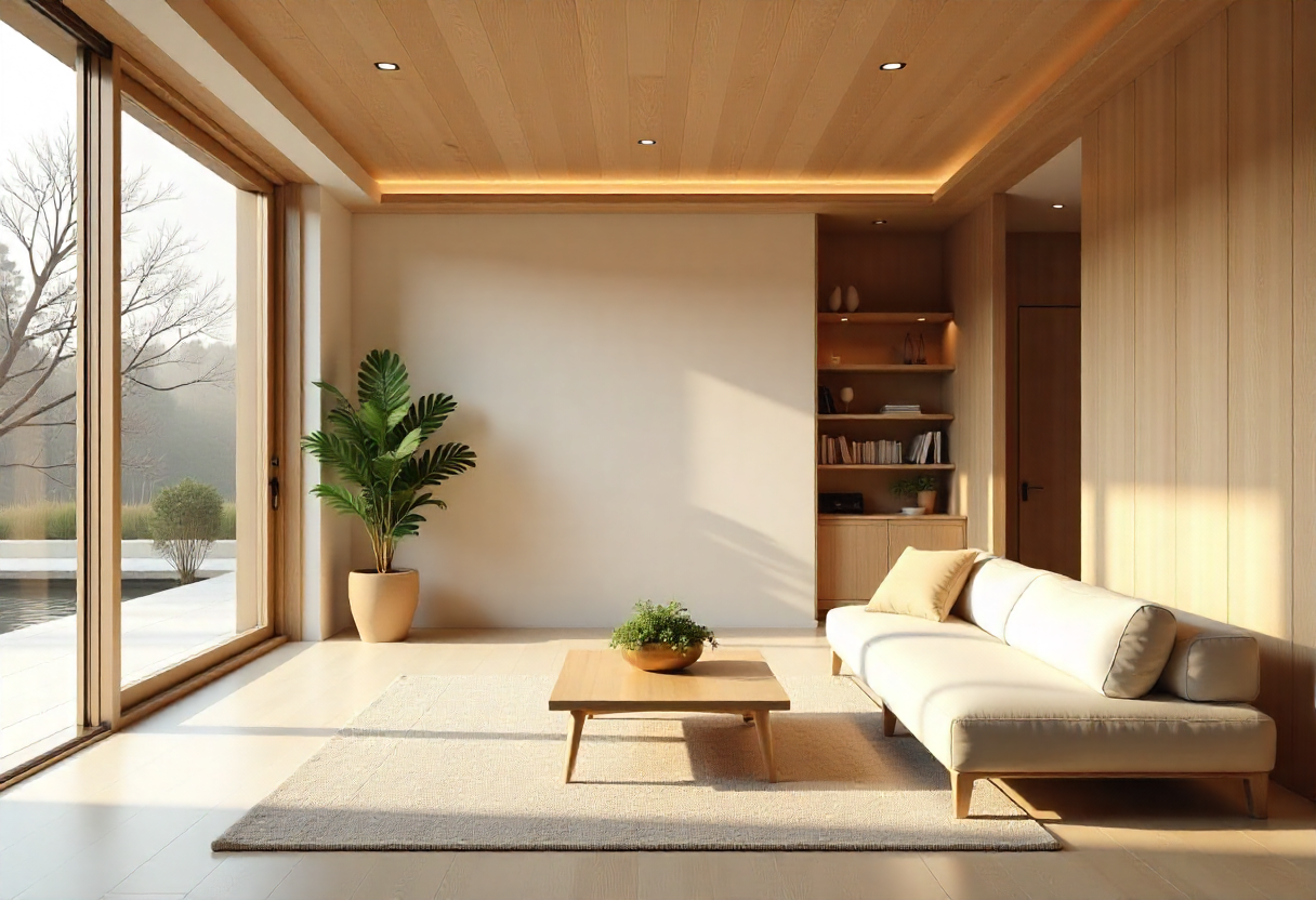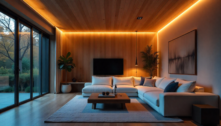 سقفهای چوبی مدرن همراه با نورپردازی LED مخفی، فضایی آرام و لوکس خلق میکنند. چوب روسی رنگشده یا بلوط از انتخابهای محبوب هستند.کفپوشهای چوبی مینیمال