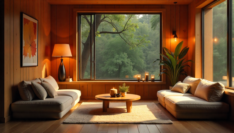 - هماهنگی رنگ چوب با نورپردازی محیط