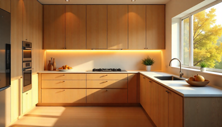 پارکتهای روشن (مانند افرا) یا تیره (مانند بلوط دودی) هماهنگی خوبی با سبک مینیمال دارند. چوب مهندسیشده یا لمینت با روکش طبیعی گزینهای اقتصادیتر محسوب میشوند.آشپزخانه مدرن با کابینت چوبی