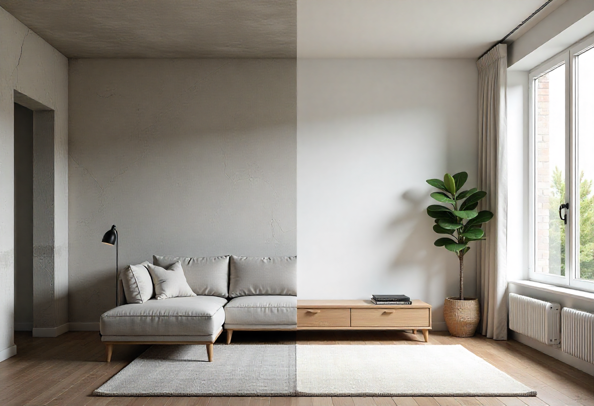 - دیوارپوشها: رنگ، کاغذ دیواری، چوب، بتن اکسپوز